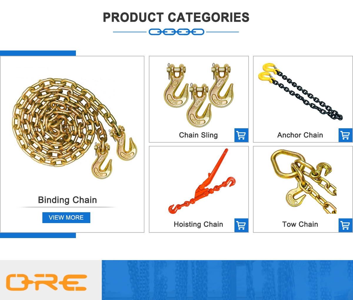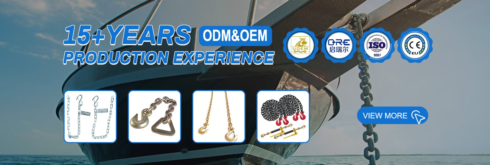 Productos principales:Cadena de encuadernación, eslinga de cadena, cadena de ancla, cadena de elevación, cadena de remolque